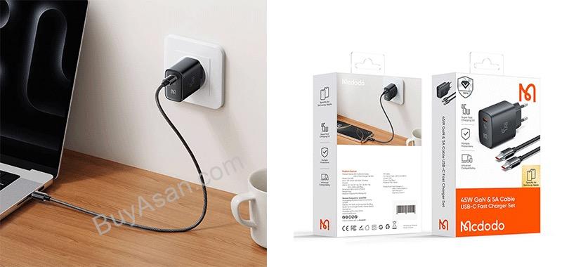 آداپتور شارژ 45 وات Super Fast Charge 2.0 مکدودو مدل CH-5080 بههمراه کابل