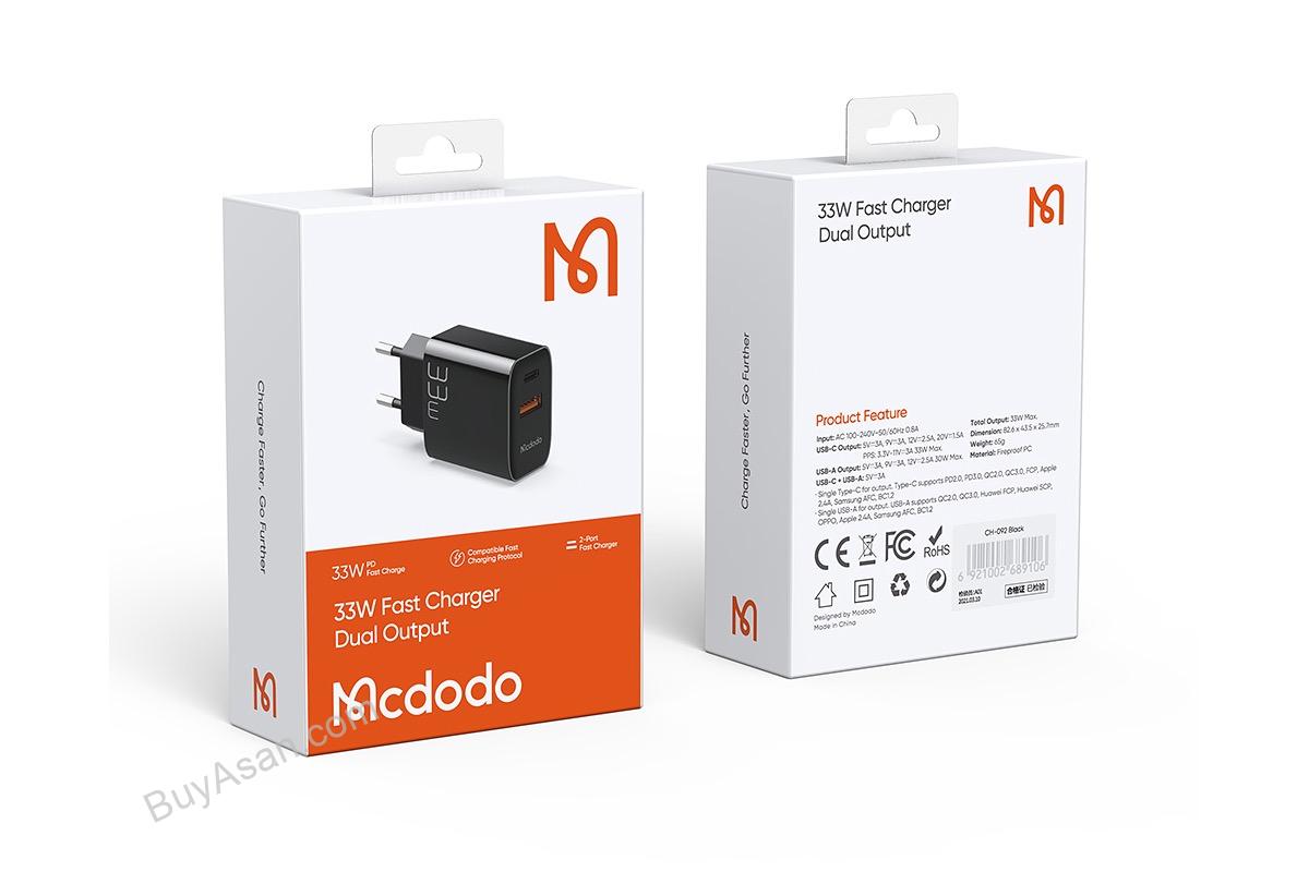آداپتور شارژر فست شارژ 33 وات مکدودو مدل CH-0922 بههمراه کابل شارژ